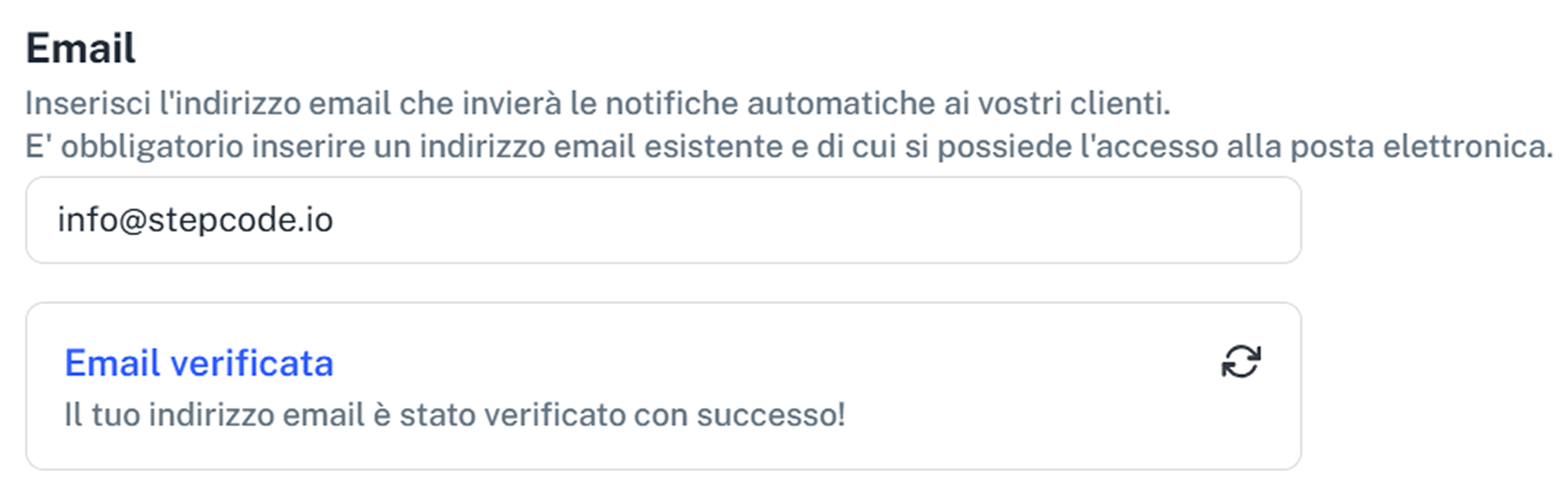 Dopo aver inserito l’indirizzo, riceverai una mail di verifica. Clicca sul link presente nel messaggio per confermare l’indirizzo. Una volta verificato, lo stato dell’email verrà aggiornato automaticamente nell’interfaccia delle impostazioni.