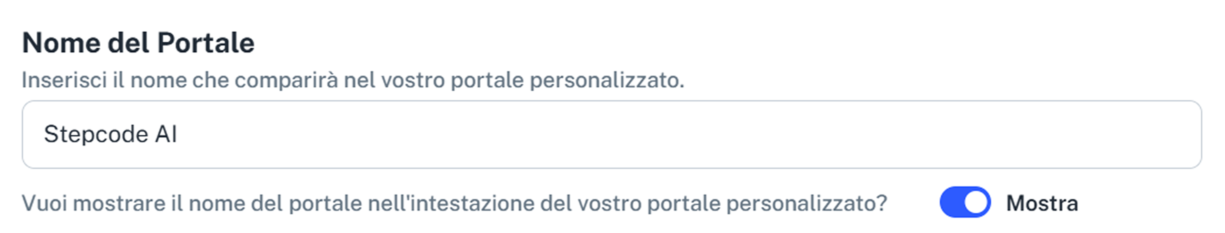 Assegna un nome identificativo al tuo portale di chatbot AI. Questo nome sarà utilizzato:
